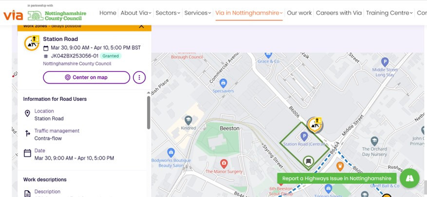 The screen shot below from VIA East Midlands shows the works which are to be taking place: