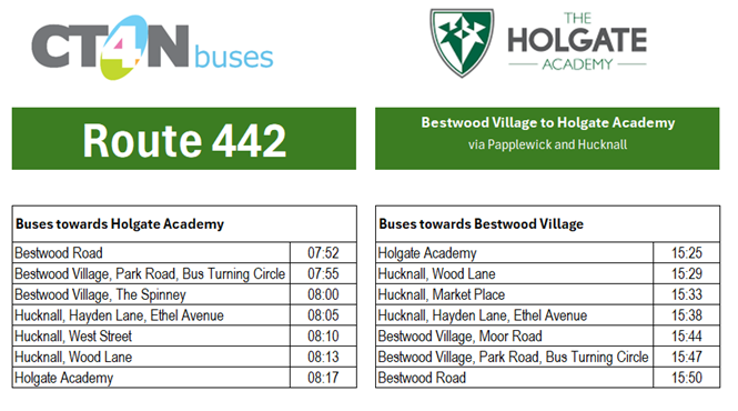 Route 442 operates between Bestwood Village and Holgate Academy.
